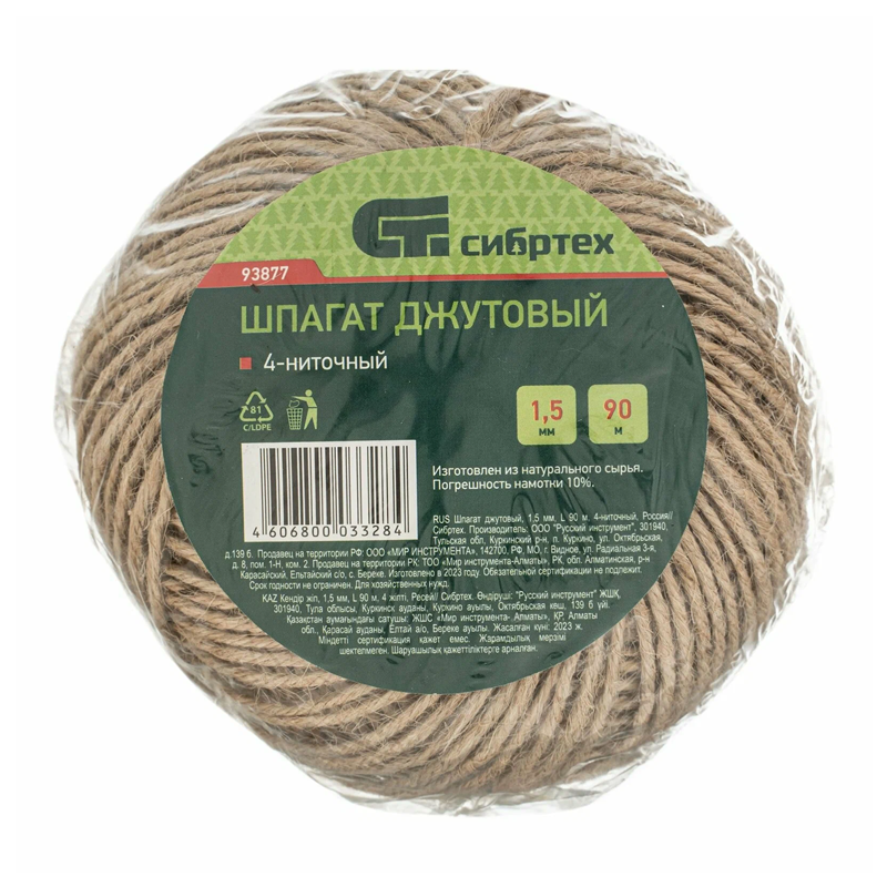 Шпагат джутовый L 90м 4-ниточный 1120текс 19.2 кгс СИБРТЕХ Россия