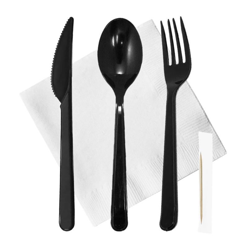Набор столовый №12 чёрный премиум (ложка, вилка, нож, салфетка, зубочистка)